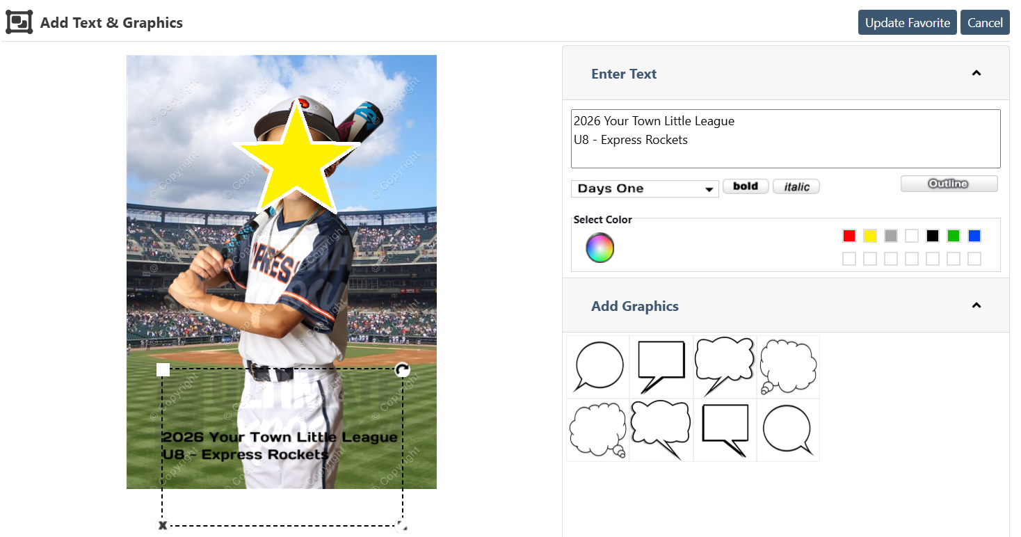 - Click Update Favorite button to confirm text and placement