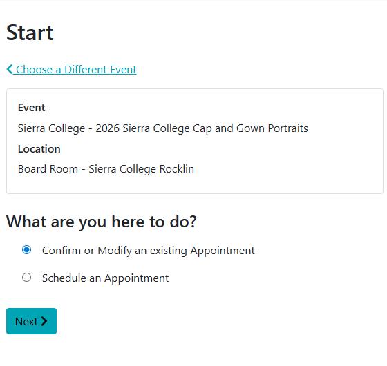 - Click “Confirm or Modify an Existing Appointment”